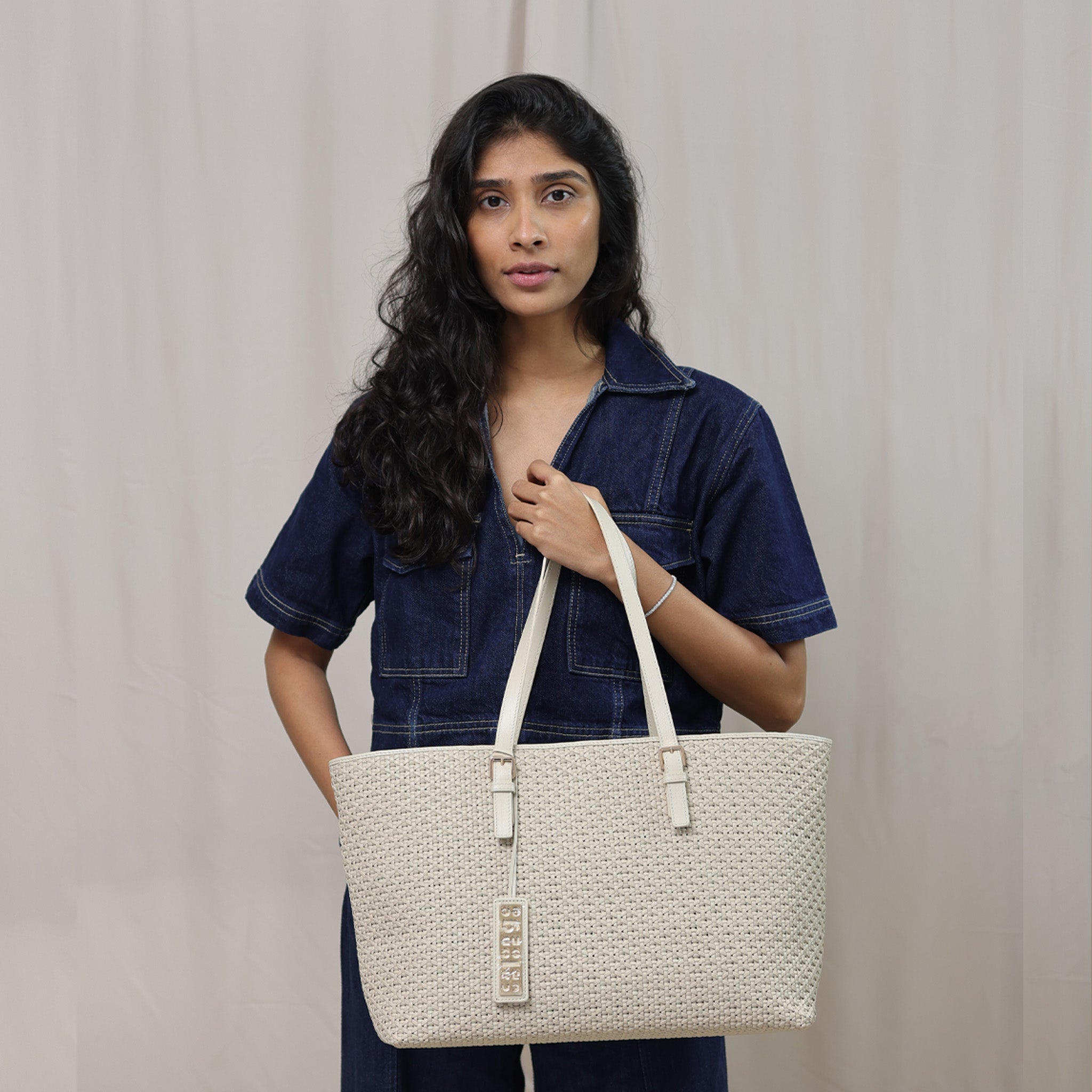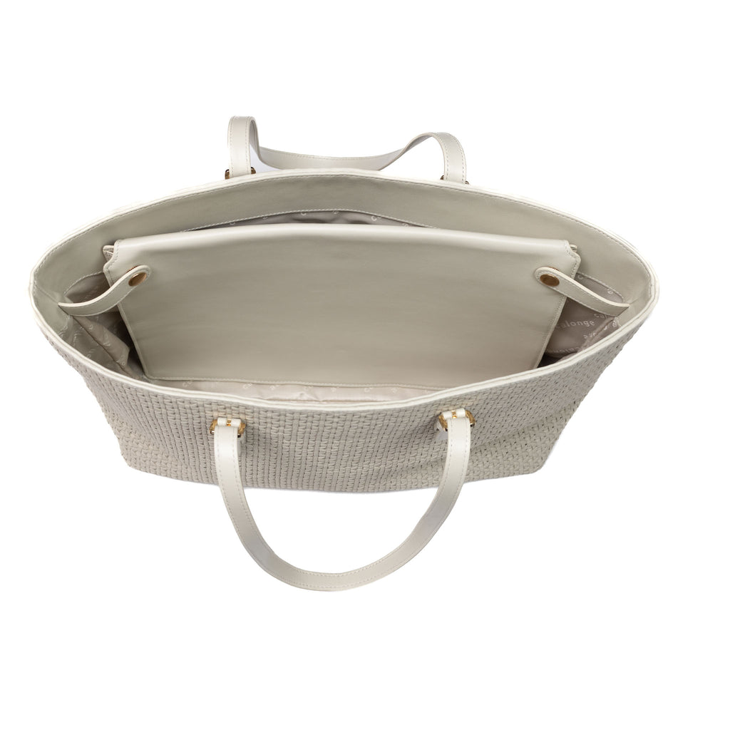 A distinguished diamond weave crafted by hand with mignon leather laces ! Spacious and semi-structured large tote bag