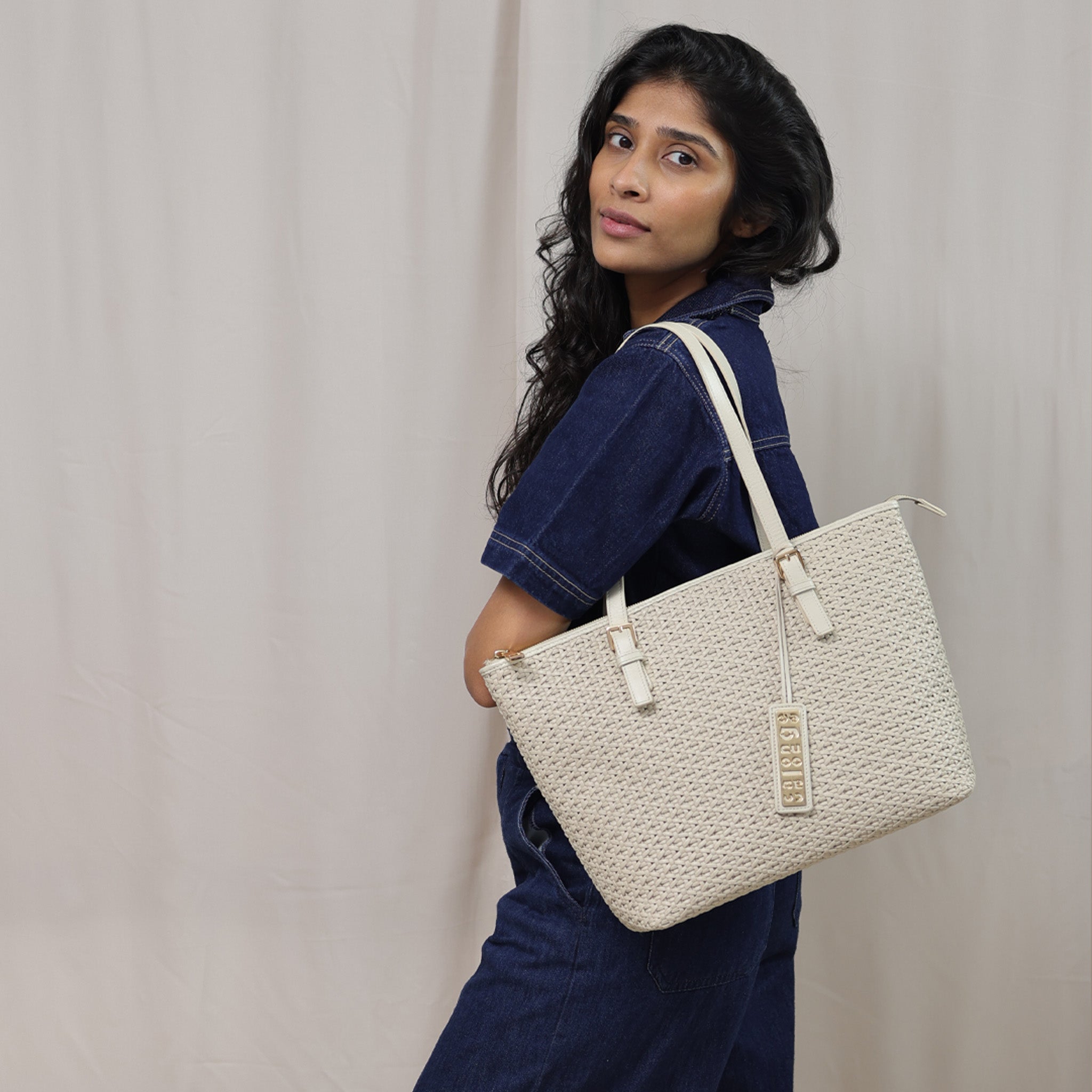 A distinguished diamond weave crafted by hand with mignon leather laces.