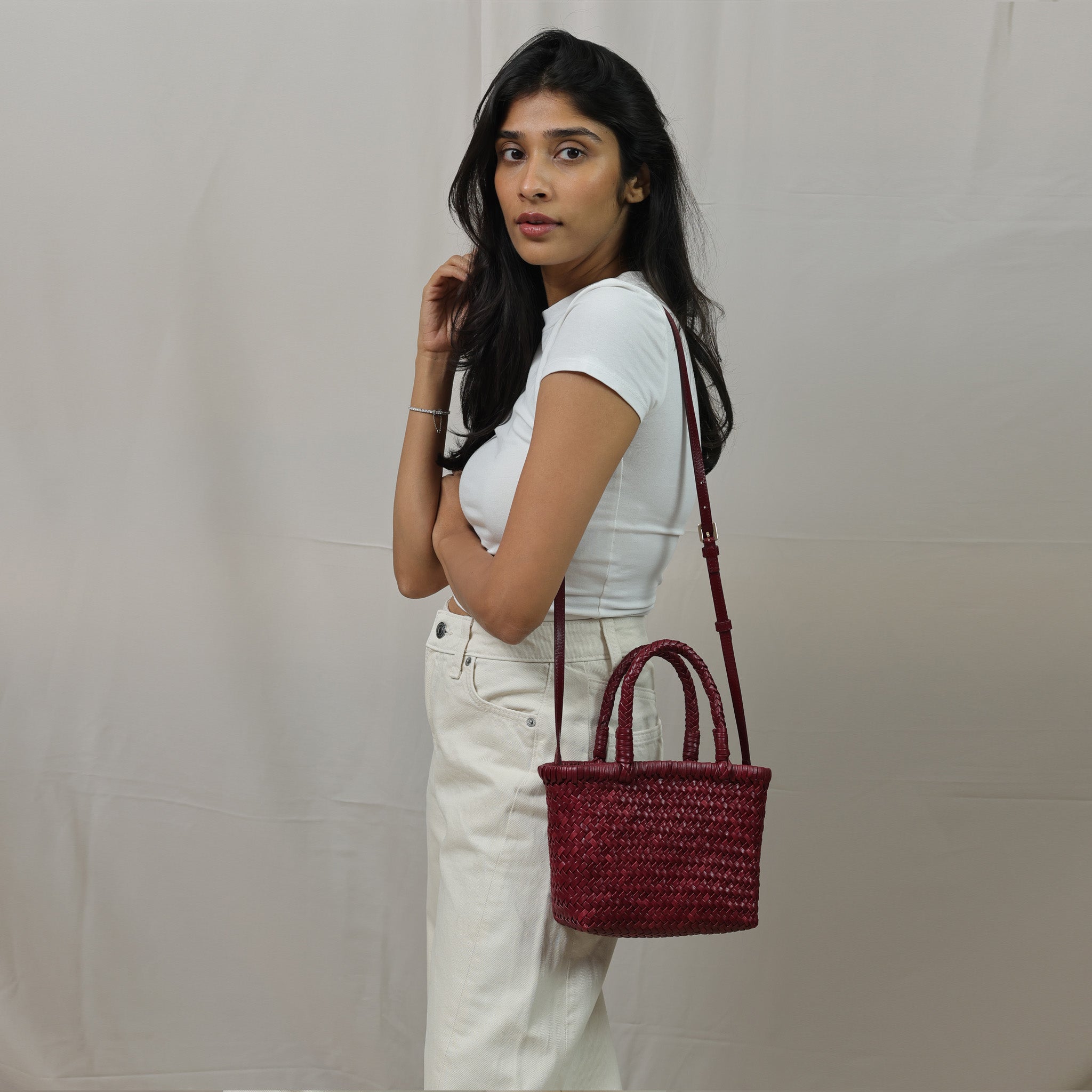 - Adjustable leather shoulder strap