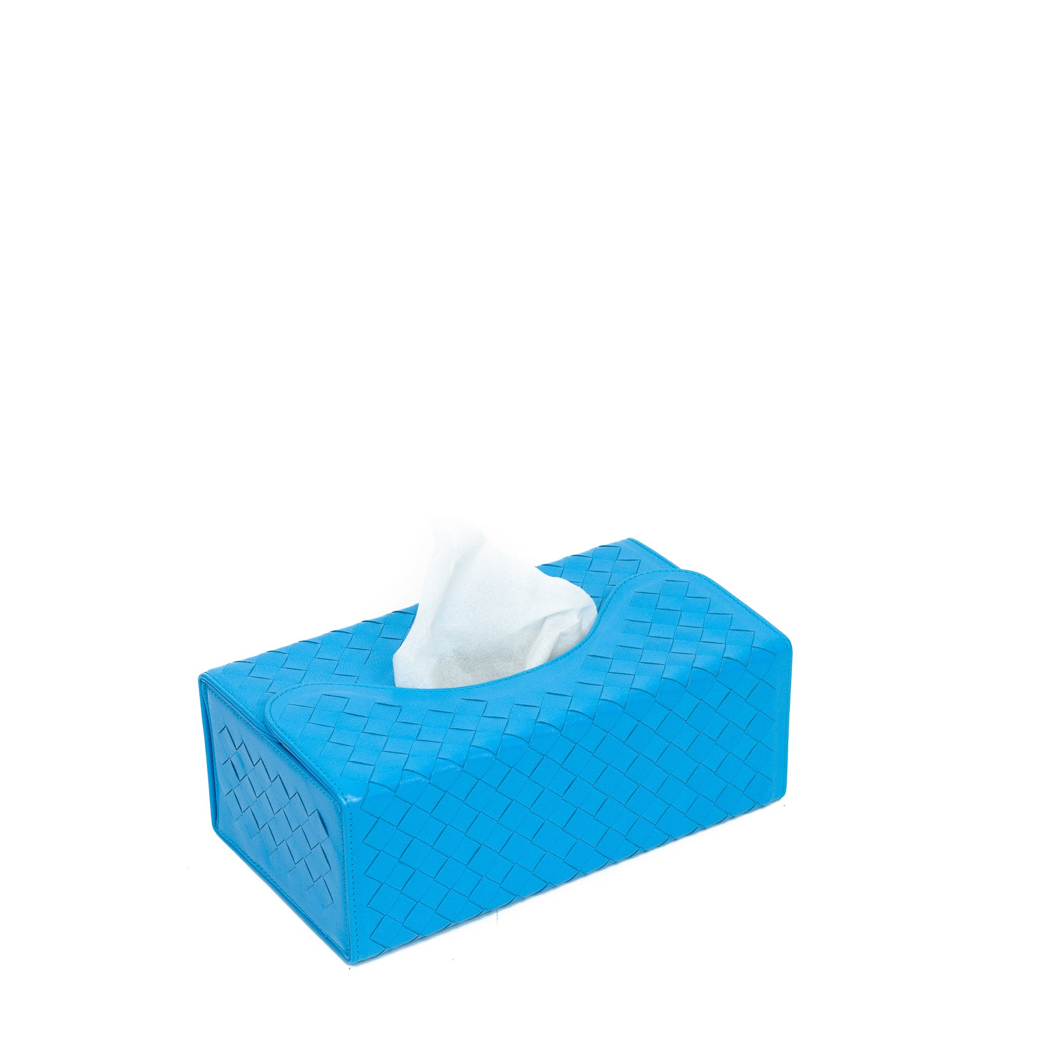 WOVEN LEATHER TISSUE BOX - BLUE