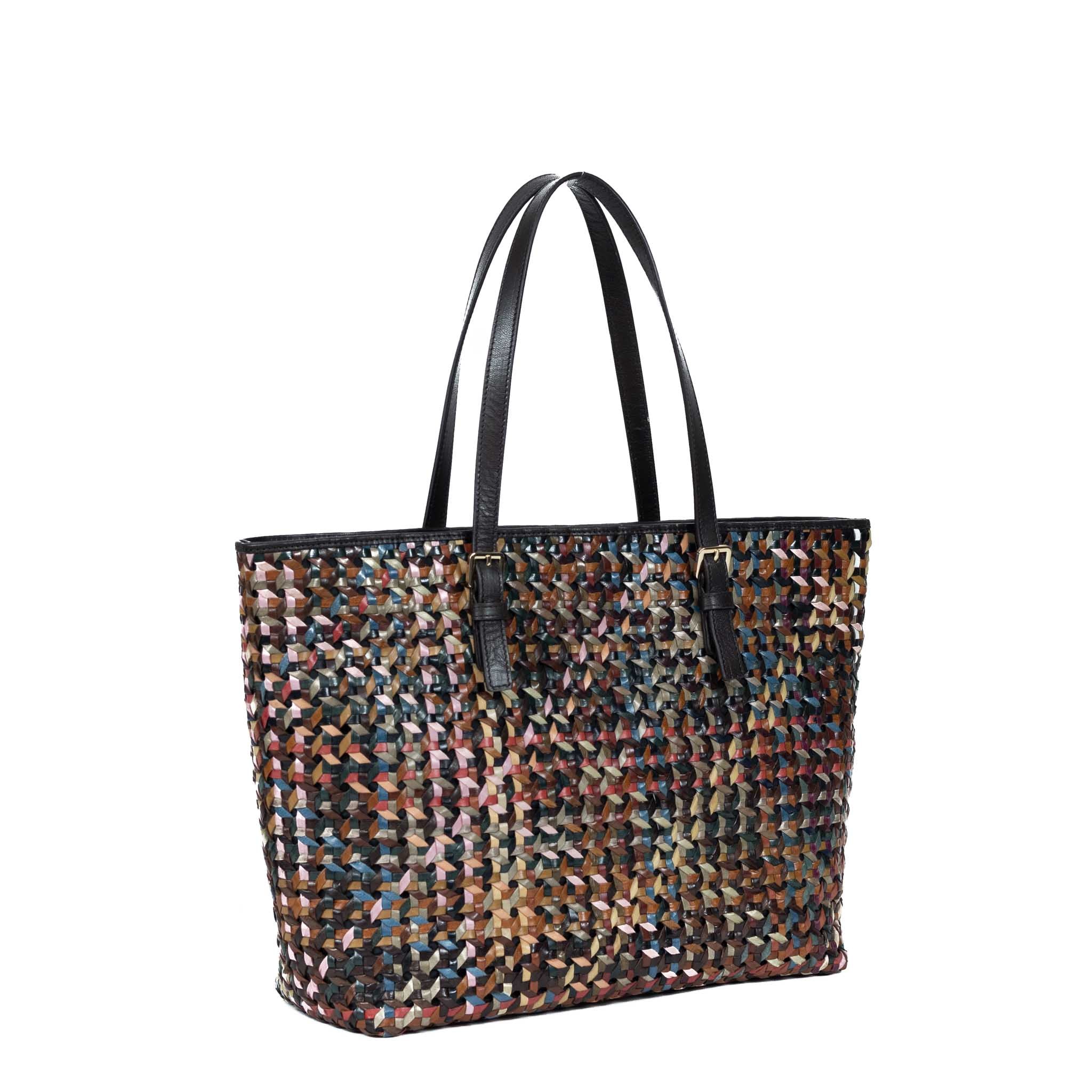 Spacious tote bag woven in folded laces in moulinet weave, a design that delivers practicality and simplicity!