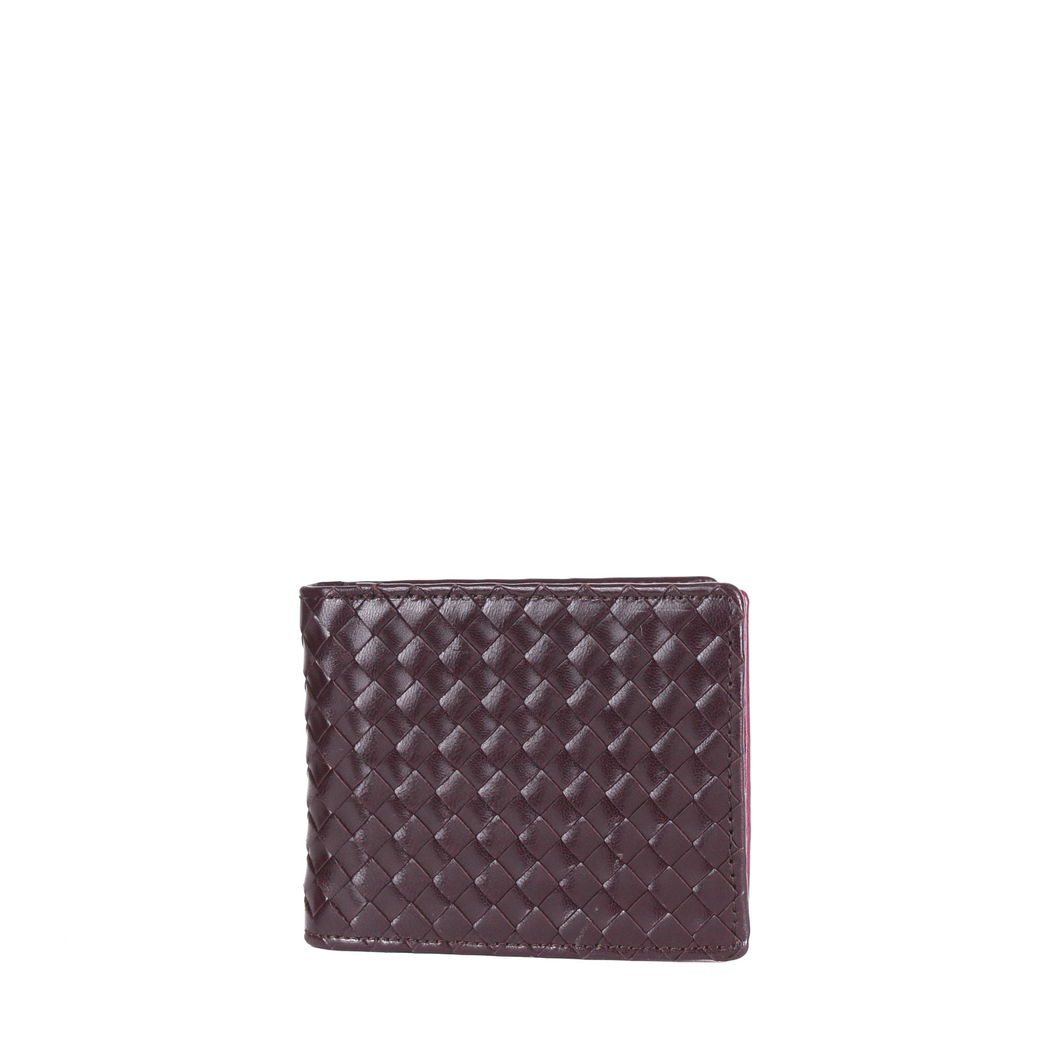 This interlaced Bifold wallet with contrast color on the inside makes carrying your monetary essentials and various currencies simple and stylish