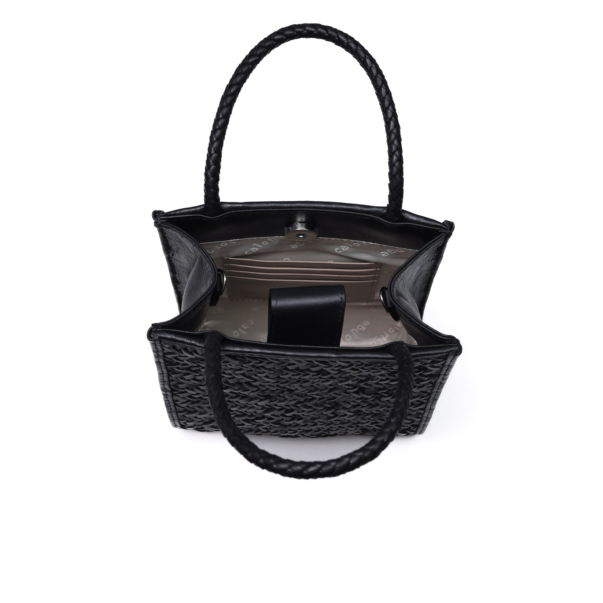 - Woven in leather