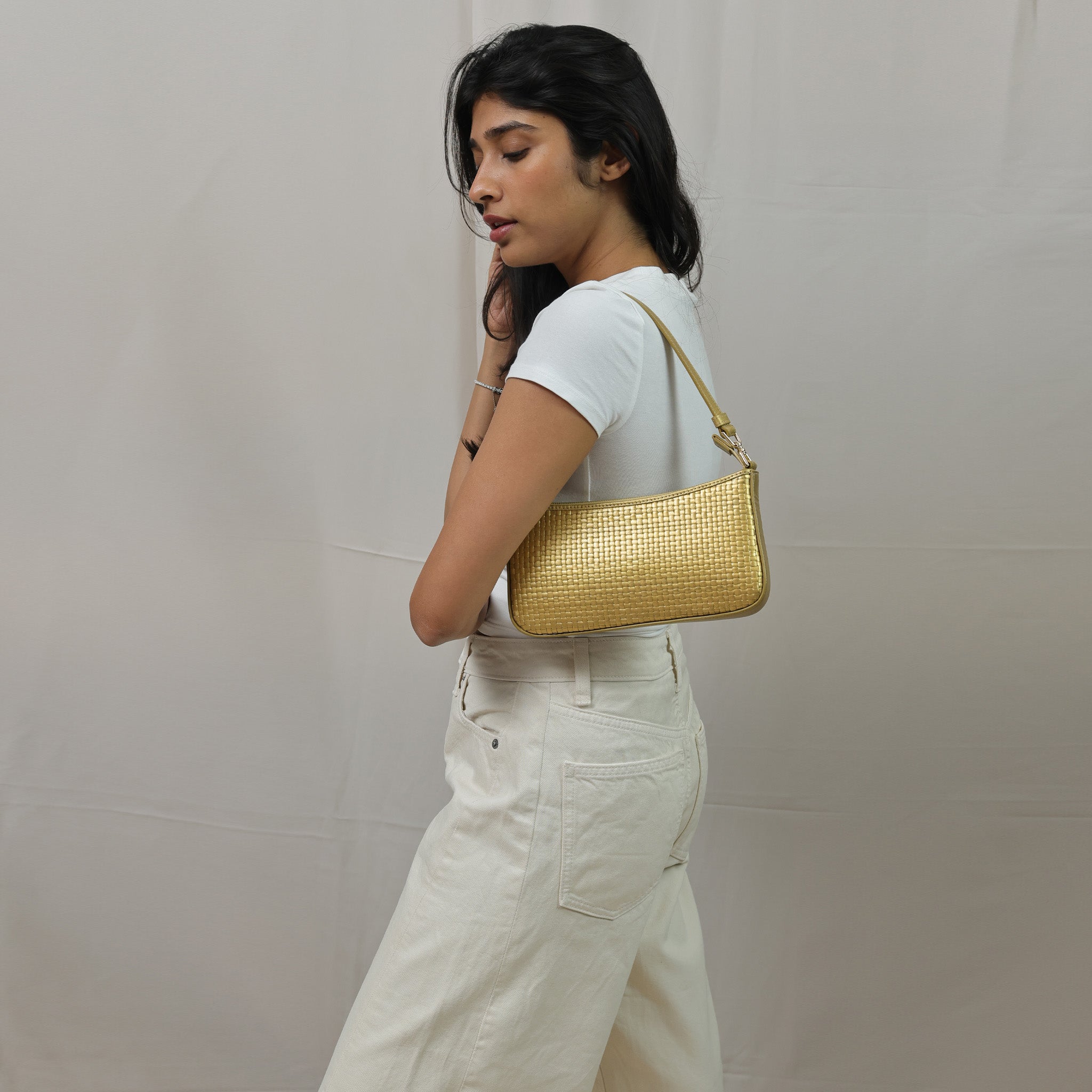 Crafted woven leather, a timeless creation that is sure to elevate any look.