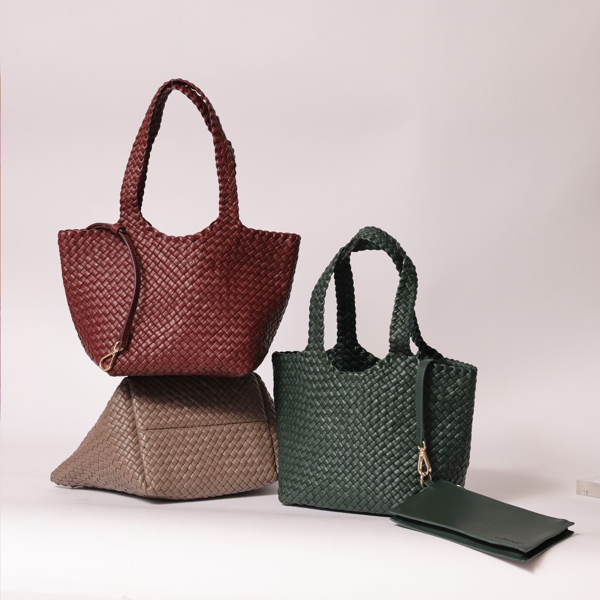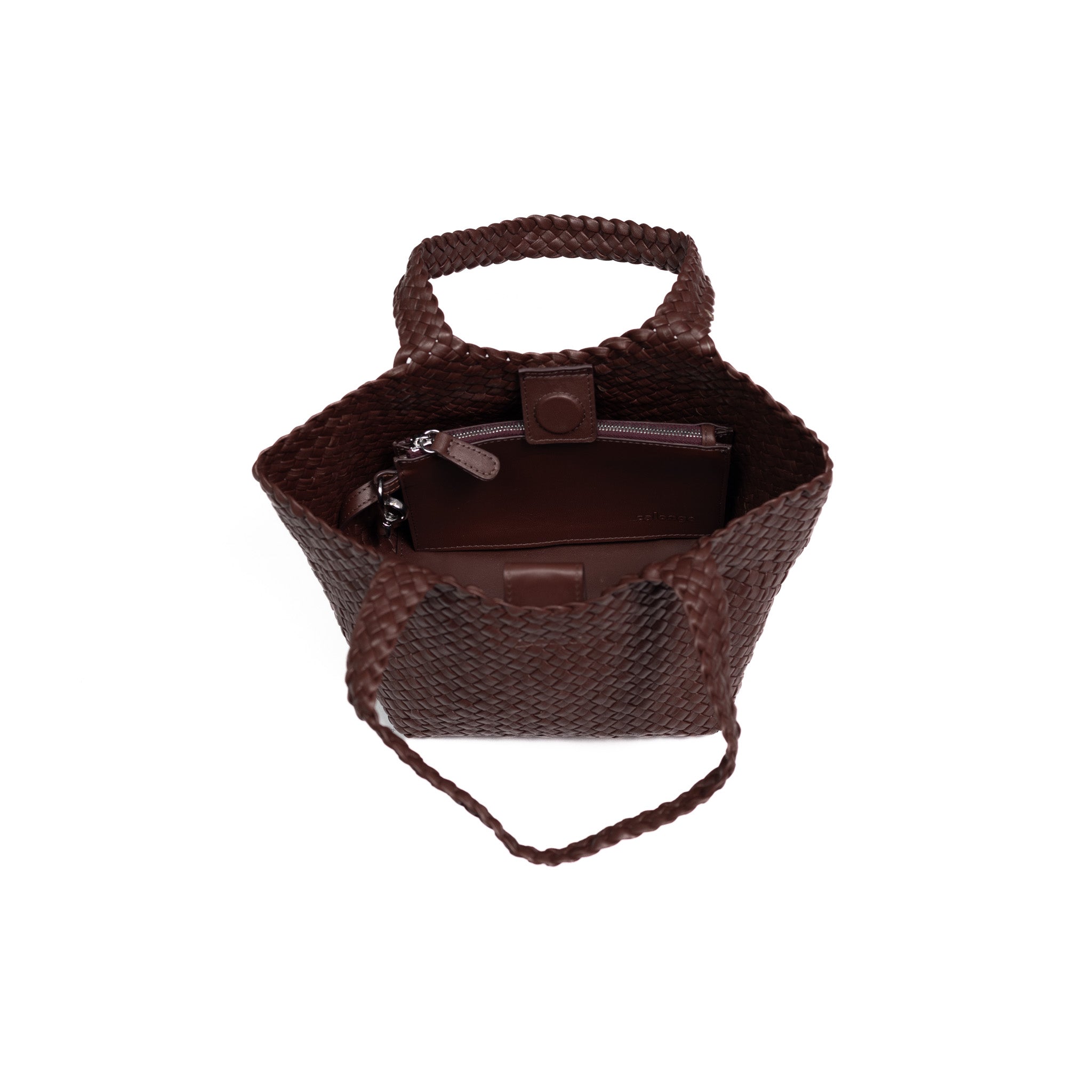 - Woven in leather
