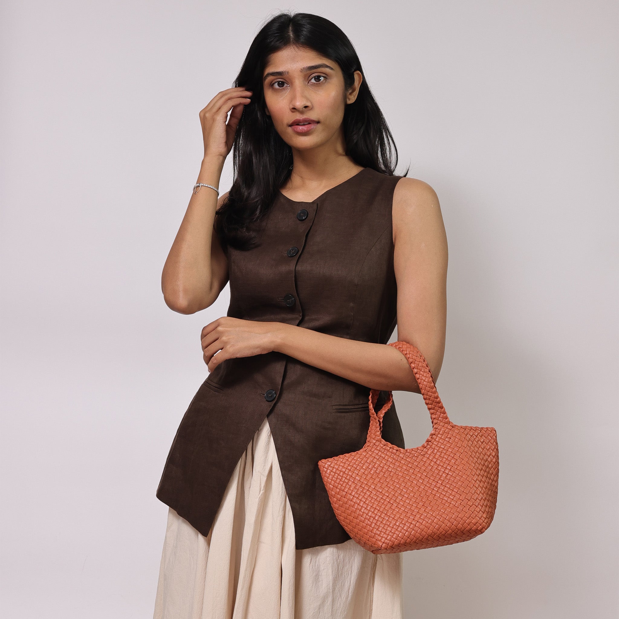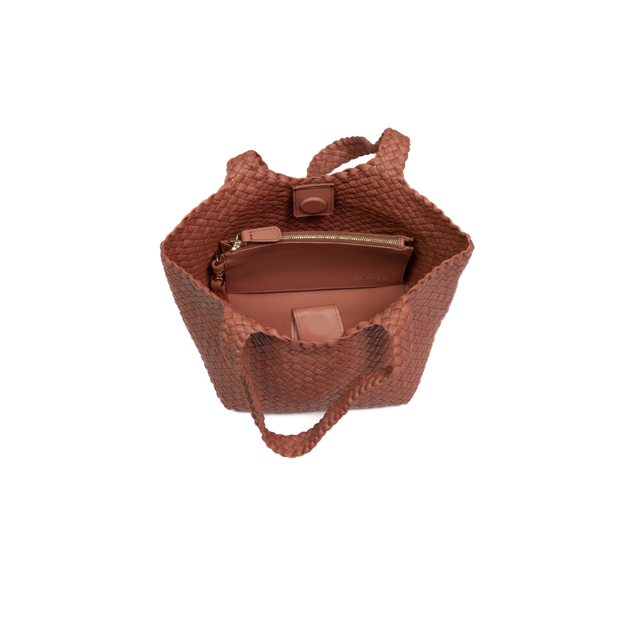 - Woven in leather