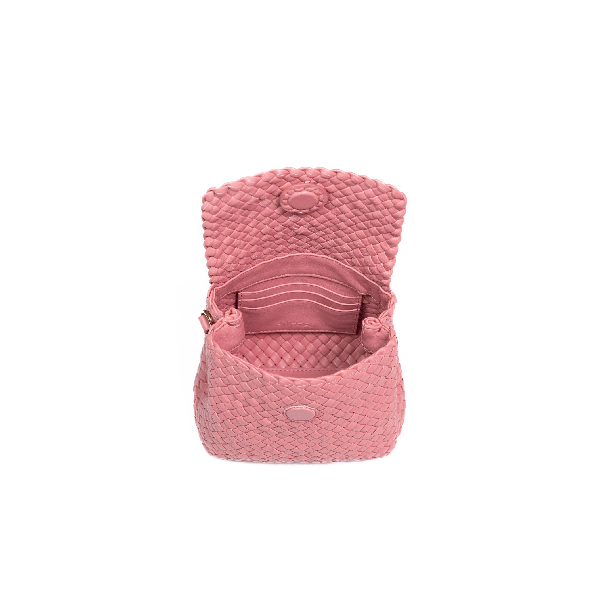 A beautifully handcrafted woven leather bag made with finely interlaced leather strips, showcasing skilled artisanal craftsmanship.