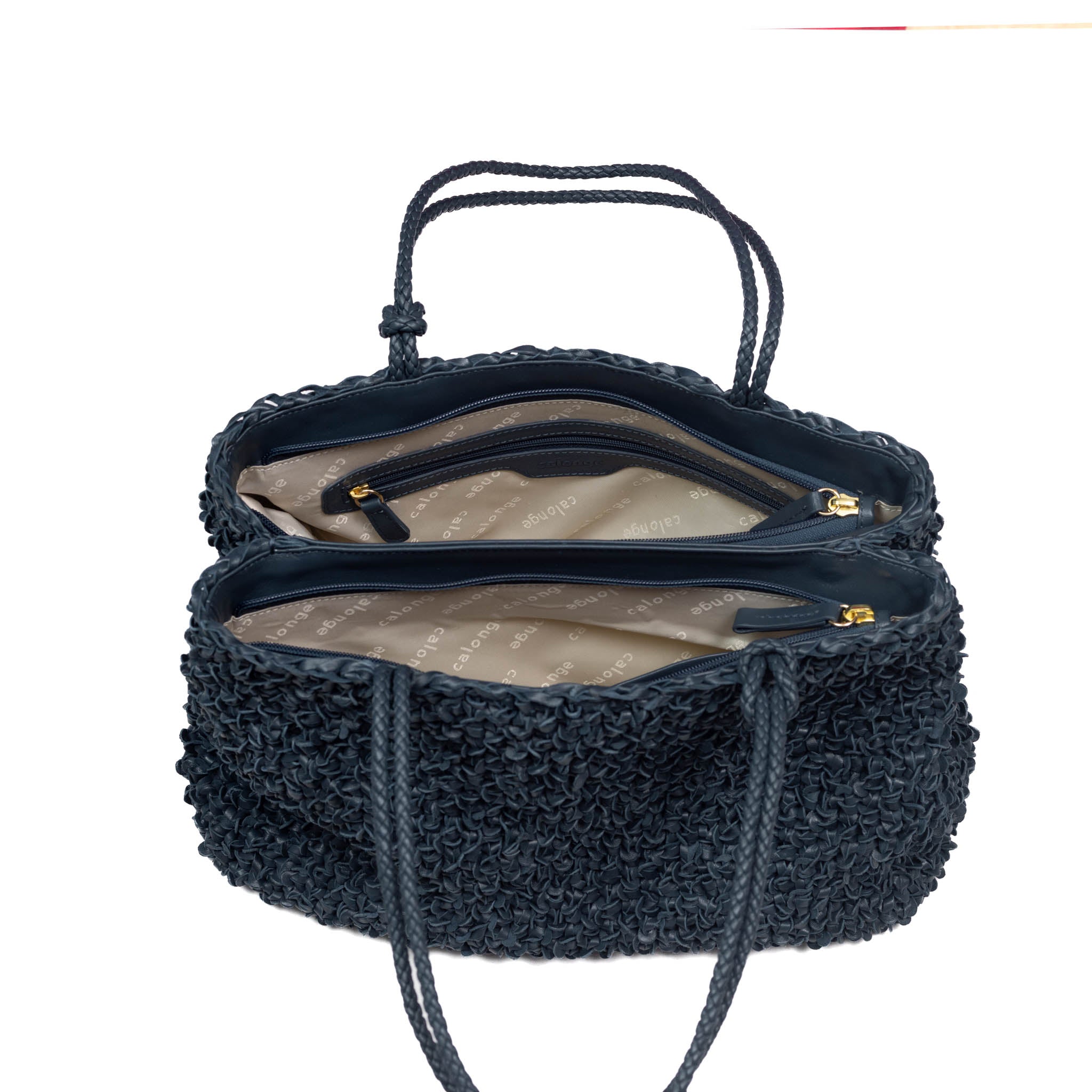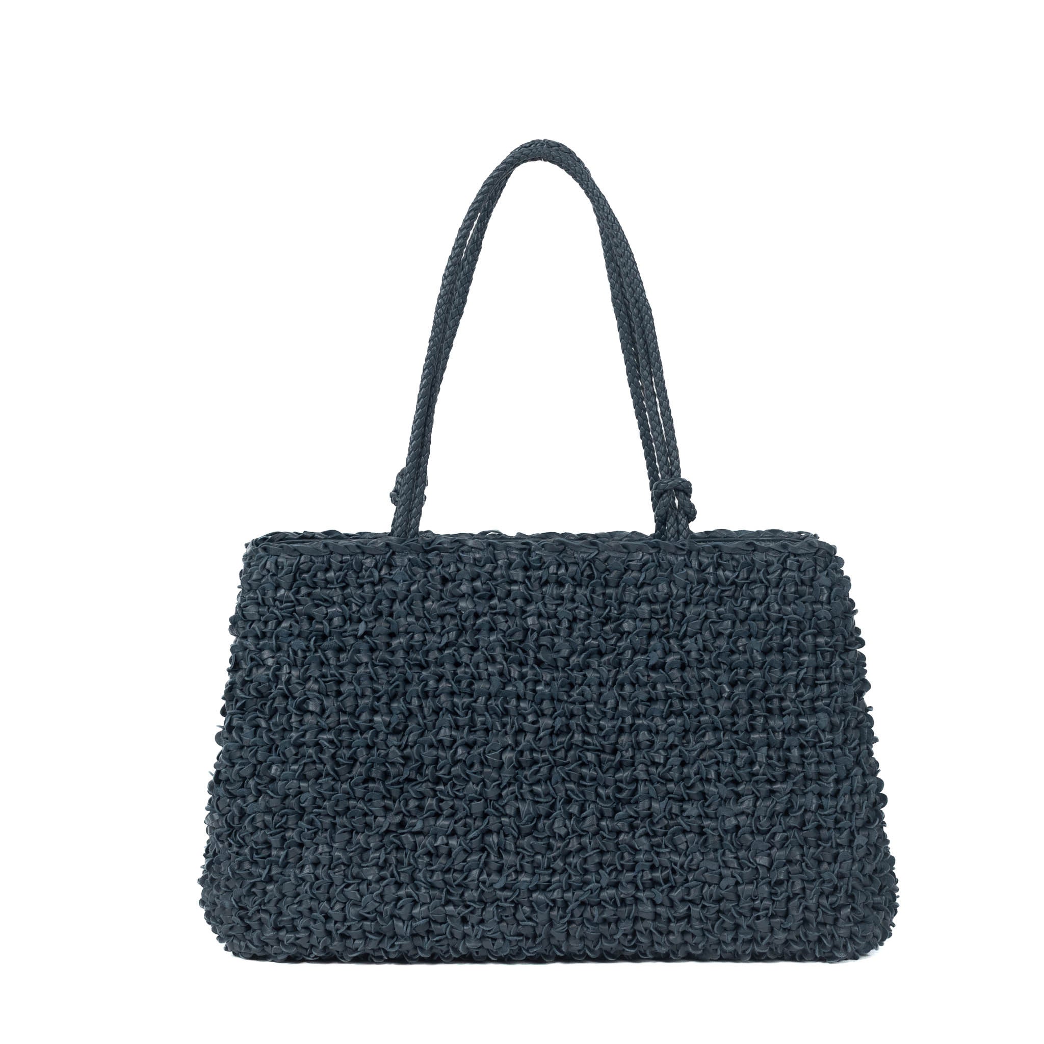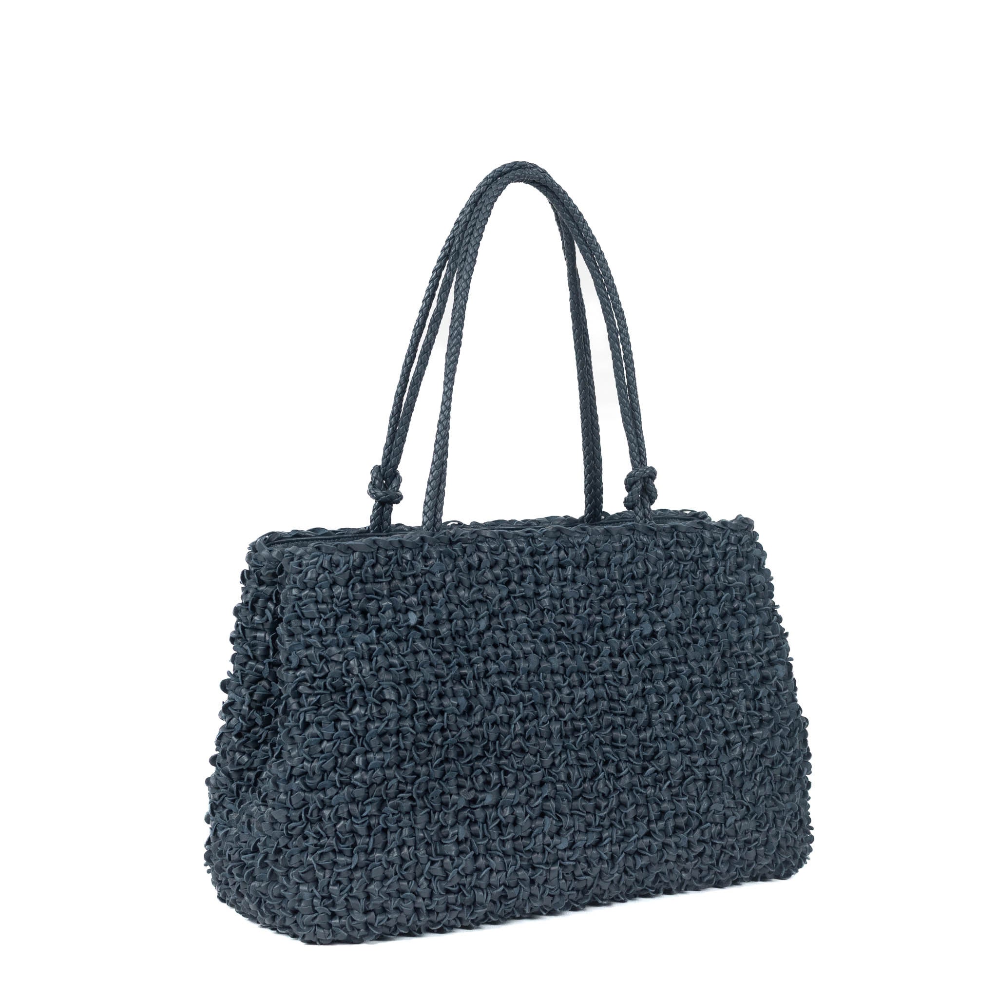 - Twin top handle in braided leather