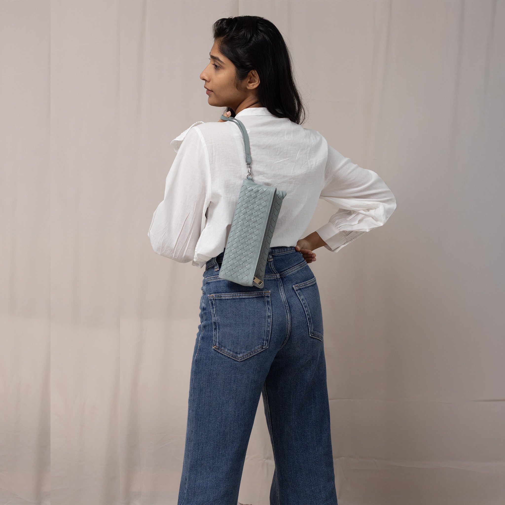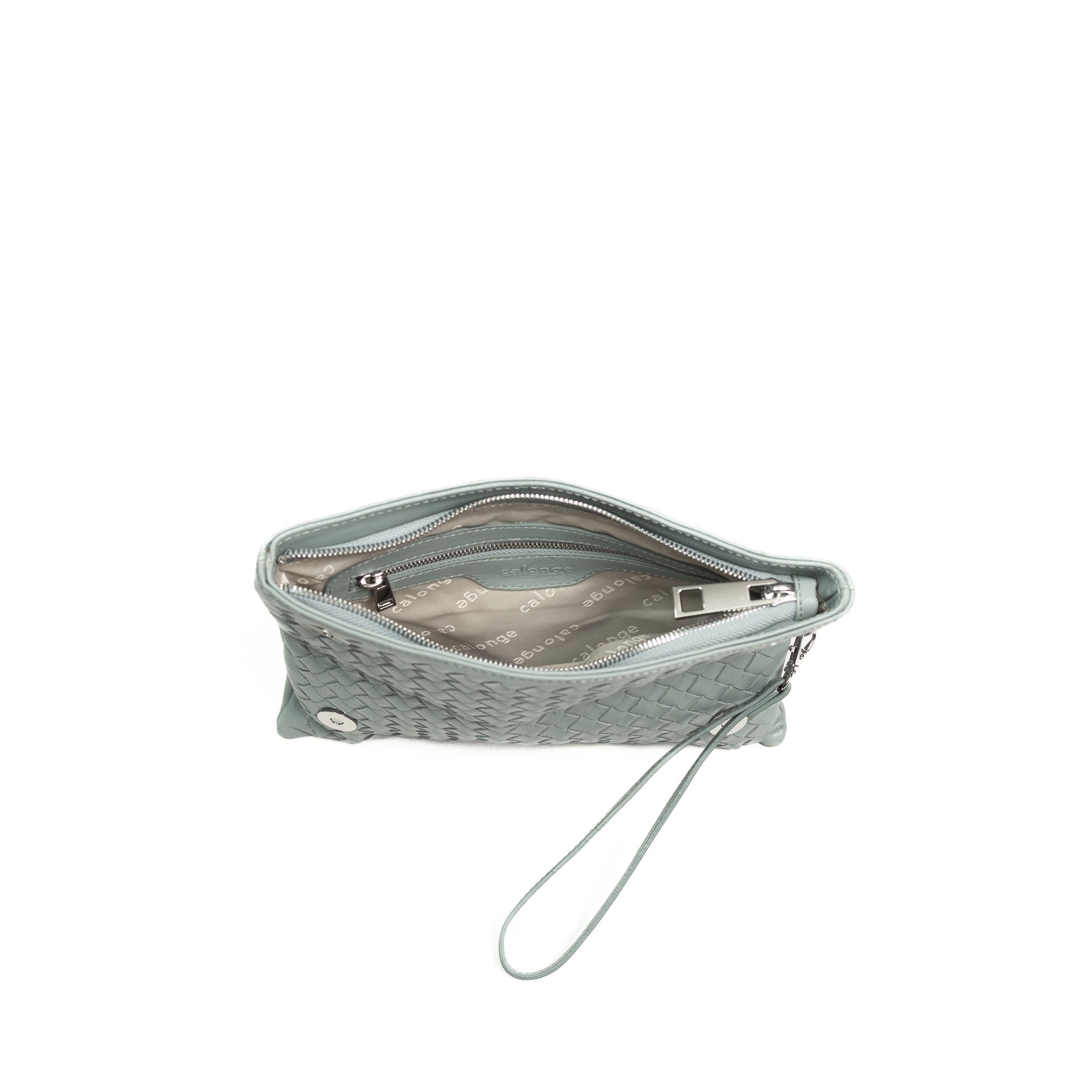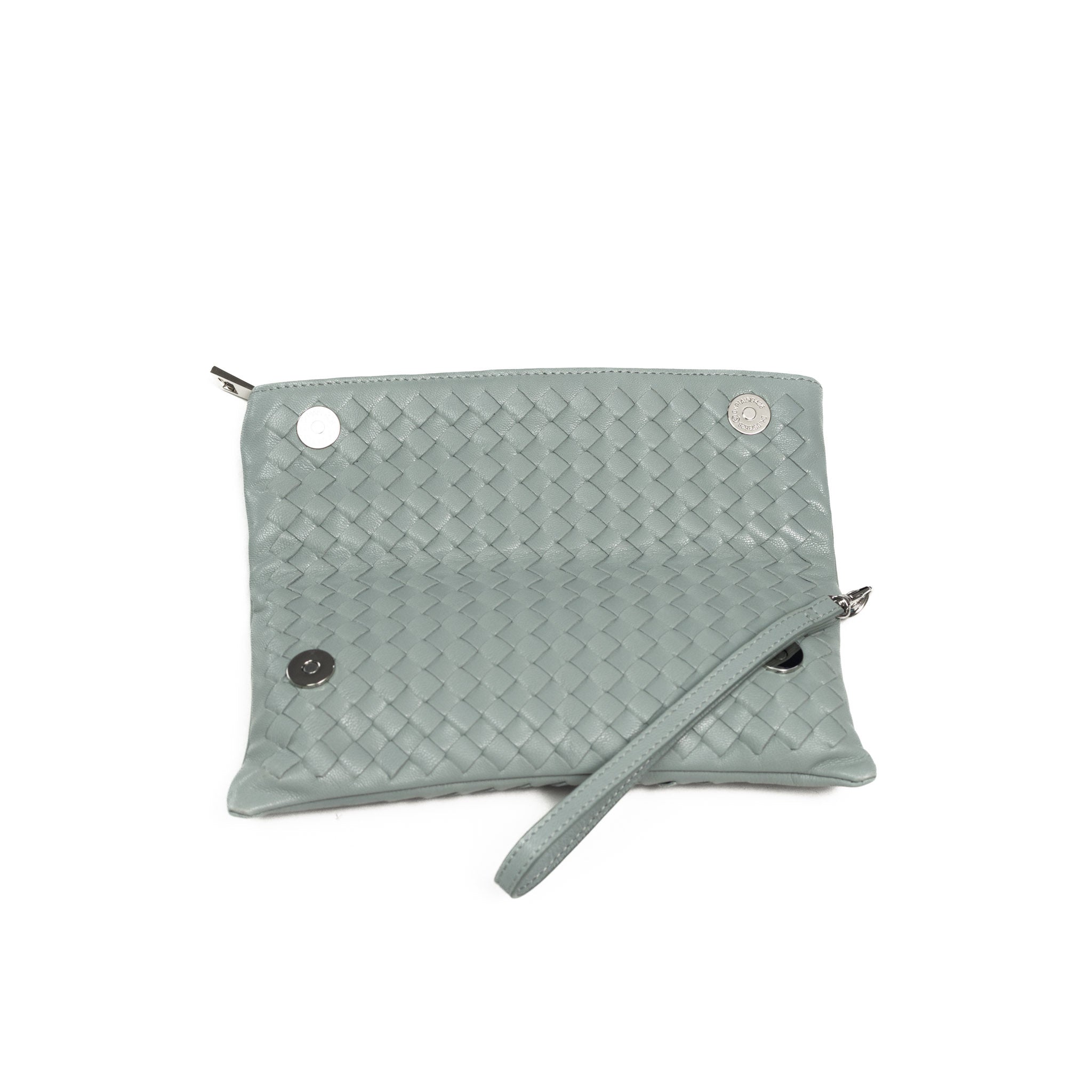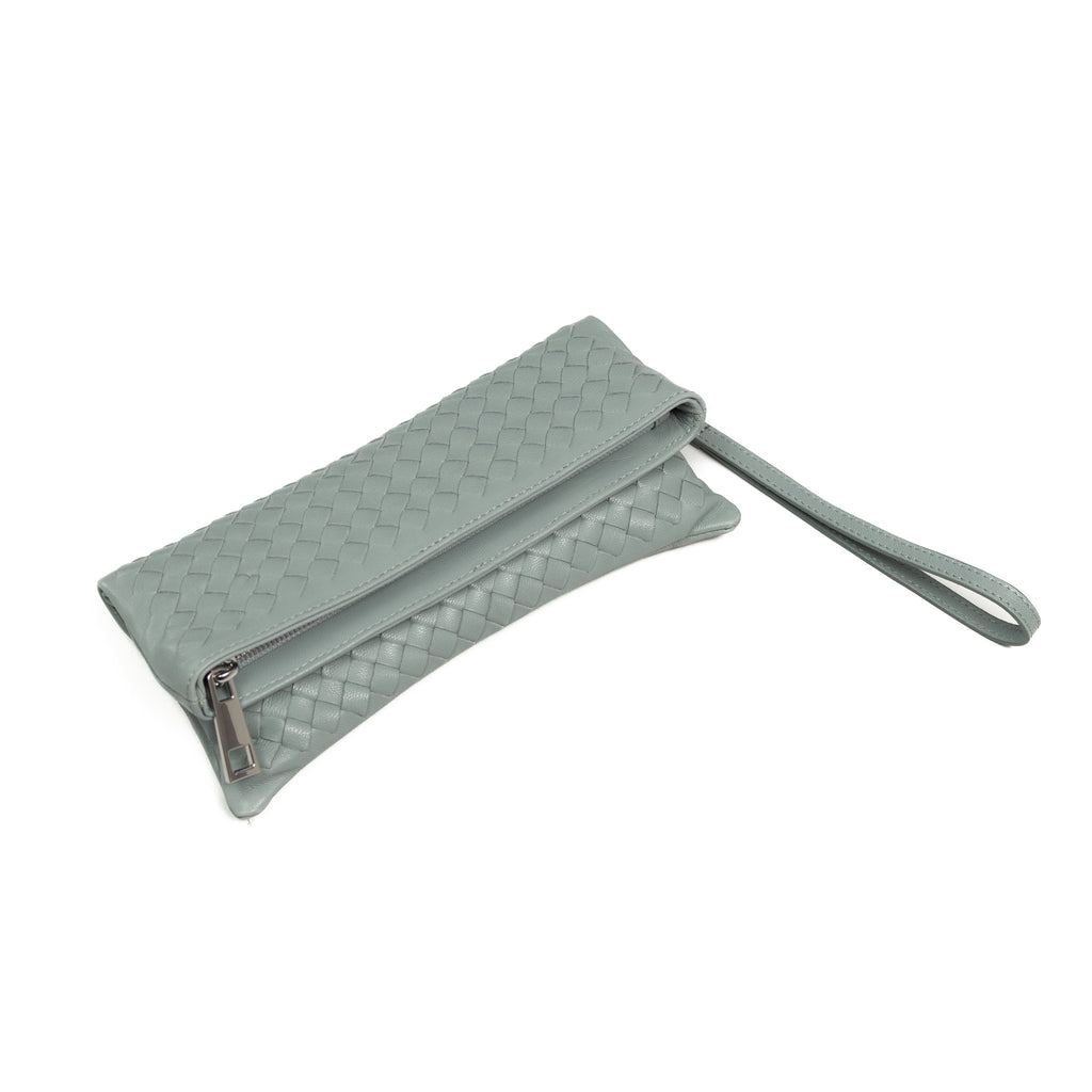 This foldover pouch is easy to carry, responding to today's need for effortless yet sophisticated accessories. It can be worn as a clutch or a wristlet