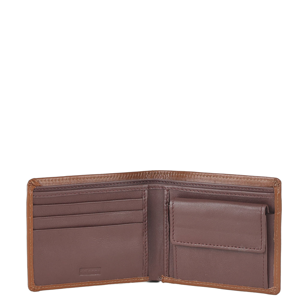 INTERLACED BIFOLD WALLET This interlaced Bifold wallet with contrast color on the inside makes carrying your monetary essentials and various currencies simple and stylish.