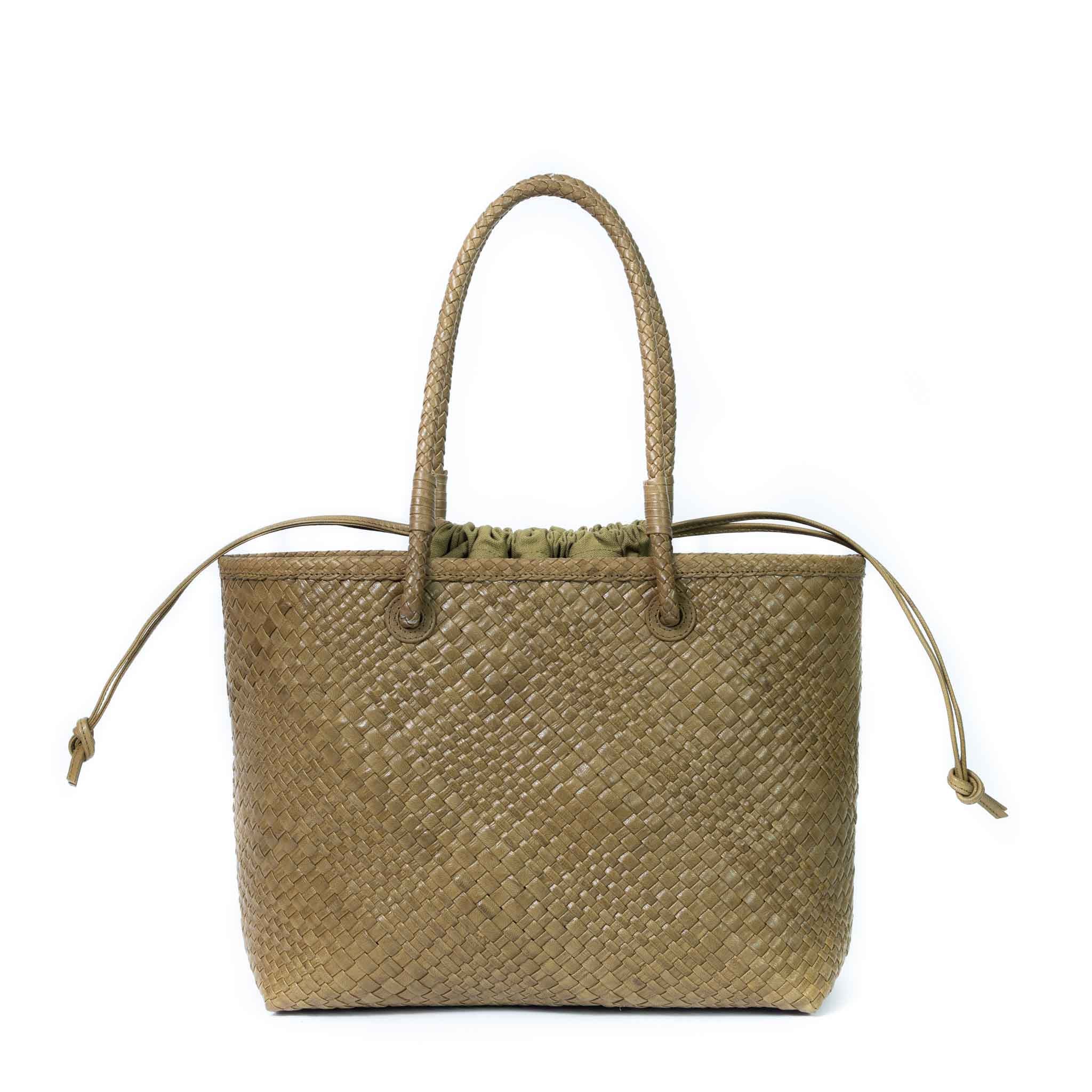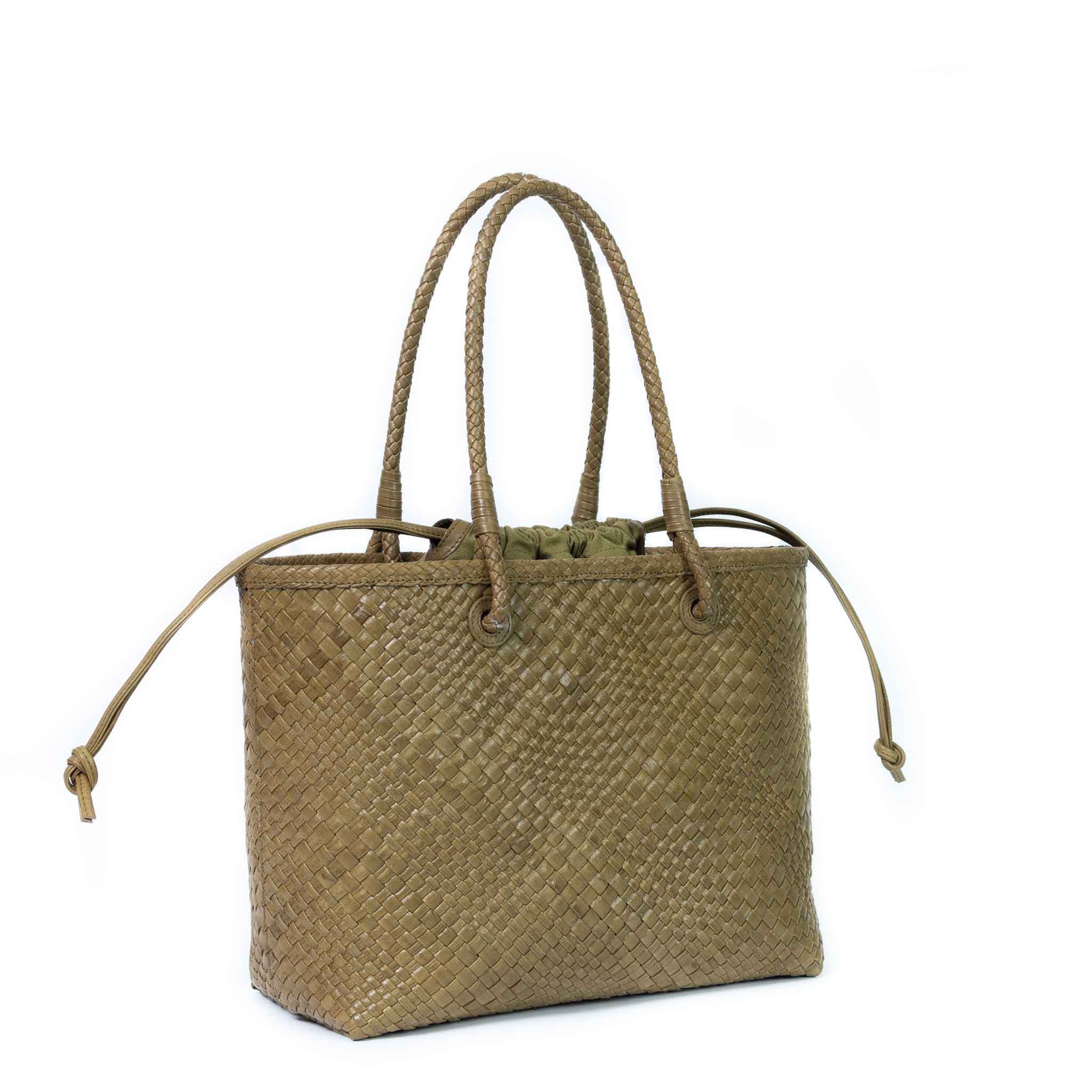 A distinguished style! Handwoven and structured tote bag, Crafted from vegetable Tanned Leather.